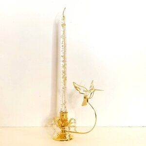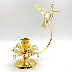 Austrian Crystal Delight Hummingbird Flower Chandelier Candle Holder 24K Gold Plated 6.5"