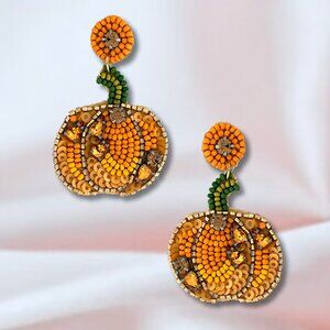Austrian Crystal Pumpkin Patch Fall Theme Seed Beaded Artisan Earrings