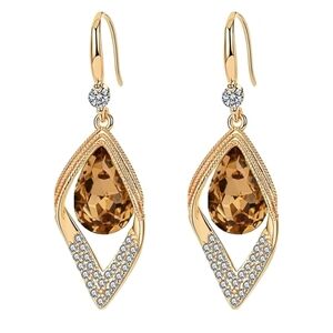 Austrian Crystal Teardrop Hollow 14K Gold Plated Hypoallergenic earrings.