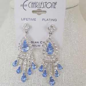 Charlestone Austrian Crystal Titanium Post pierced earrings. Tear drops, 2.5" at the longest point and 1" at the widest point