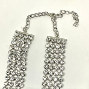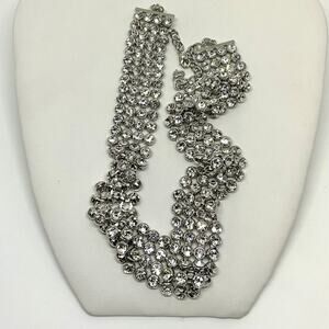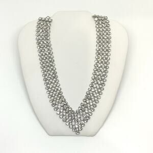 Stunning Chevron Wedding Necklace, made with 150.00 ctw of Austrian Crystals. Necklace has 4 Layers of flexible, soft Austrian Crystal, nice weight and makes a great Wedding, New Year or black Tie Affair Necklace. It’s New, was Never Worn.