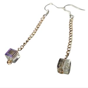 Austrian Cubic Crystal Glass Duster Earrings – Silver Plated with Brass Chain Accent