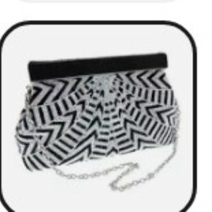 9" Metropolitan Museum Of Art Convertible Beaded Clutch Bag Purse Black White