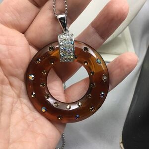 Austrian crystal Lucite Long Silver Ball Chain Necklace