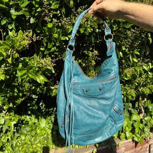 Auth 2005 Balenciaga Teal Turquoise Green Blue Chevre Day Shoulder Hobo Bag