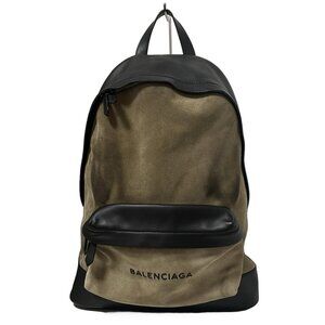 Auth BALENCIAGA Navy Backpack 392007 Gray Beige Black Suede Leather - Backpack