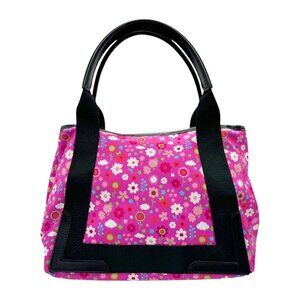 Auth BALENCIAGA Navy Cabas XS Handbag Tote Bag Pink/Black Canvas - z2775