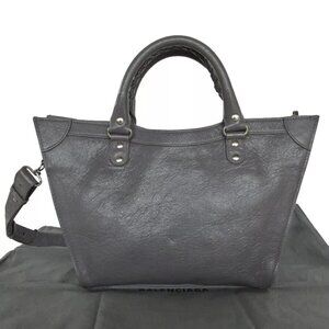 Auth BALENCIAGA Neo Classic M Handbag Shoulder Bag gray leather
