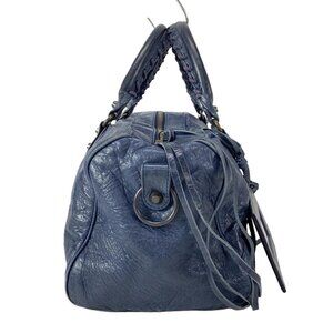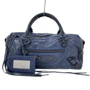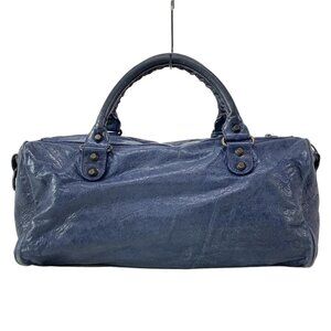 Auth BALENCIAGA The Twiggy 128523 Navy Leather Handbag