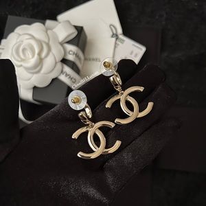 Auth BN Chanel Classic CC Logo Gold Dangle Earrings