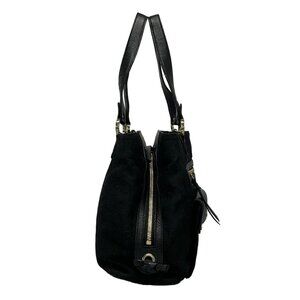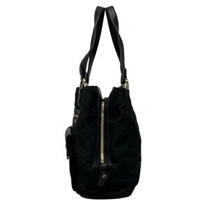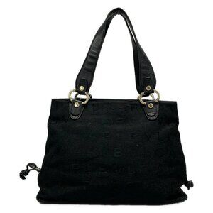 Auth BVLGARI Maxi Logo Beckey Black Jacquard Leather Handbag