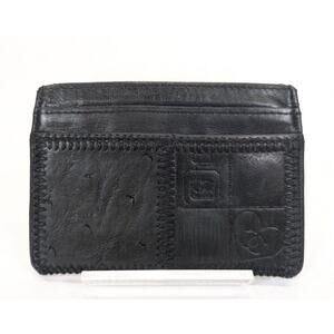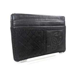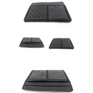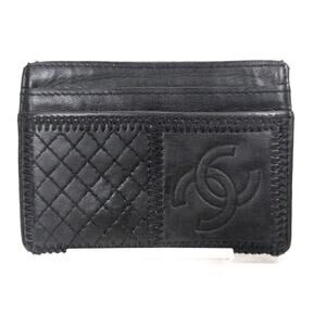 Auth Black CHANEL Card Case CC Mark Quilting Patchwork Black Leather