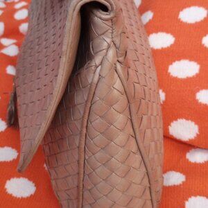 Auth Bottega Veneta Italy Intrecciato Taupe Leather Large Envelope Clutch bag