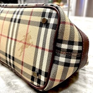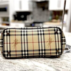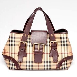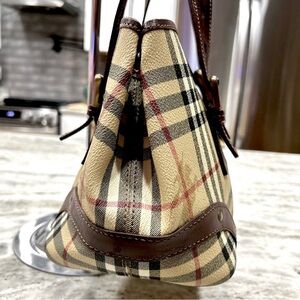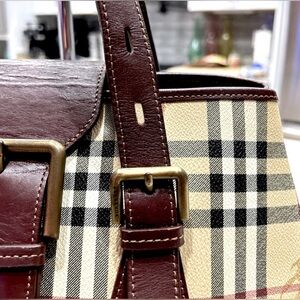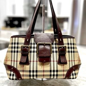Auth Burberry Haymarket Checked Coated Canvas With Leather Trim Bag w/ bonus$180