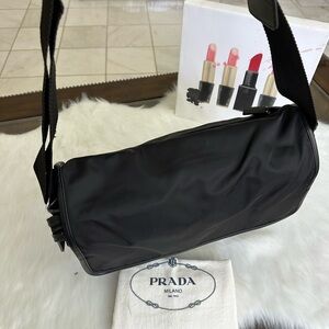 Authentic Prada Business Messenger bag nylon leather amazing condition. With silver hardware