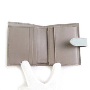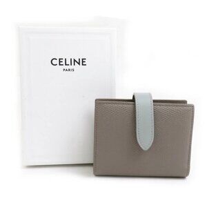 Auth CELINE Bifold Wallet Greige/Blue Grey Leather