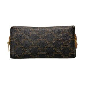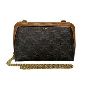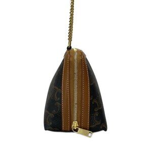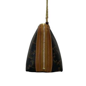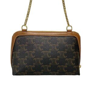Auth CELINE Clutch with Chain 10E382CBX.04LU Black Dark Brown Triomphe Canvas -