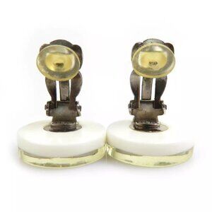 Auth CHANEL CC Logo Clip on Earrings White/Silver Resin/Metal - e59866g