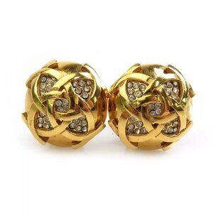 Auth CHANEL Clip on Earrings Gold/Silver Metal/Rhinestone