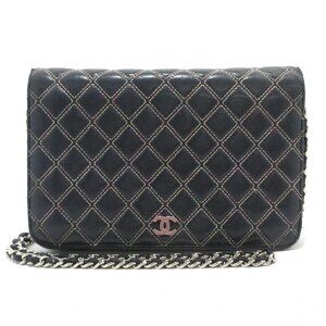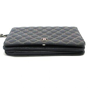 Auth CHANEL Matelasse/Double Stitch - Dark Navy Pink Lambskin Other Style Wallet