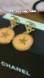 Chanel Gold CC Black Round Star Dangle Stud pierced earrings with box.