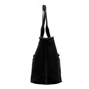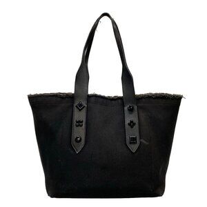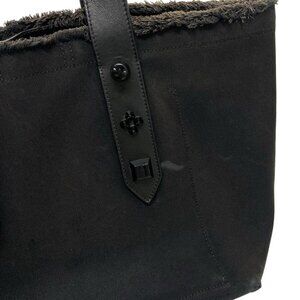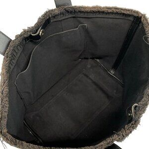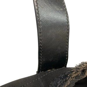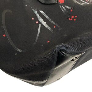Auth CHRISTIAN LOUBOUTIN fringe bus - Black Red White Canvas Leather Tote Bag