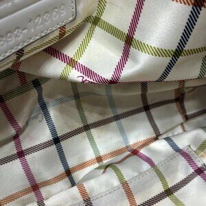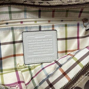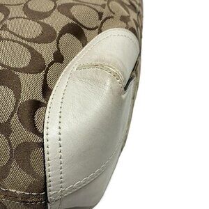 Auth COACH Bleecker Signature Tote 12369 Khaki Cream Jacquard Leather Tote Bag