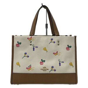 Auth COACH - C8602 Cream Light Brown Multi Canvas Leather Tote Bag