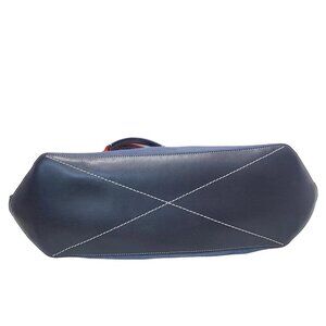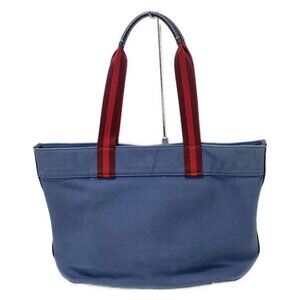 Auth COACH - CJ607 Navy Red Bordeaux Canvas Leather Tote Bag