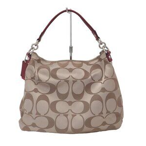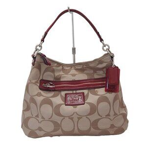 Auth COACH Daisy Poppy Signature Hobo F20064 Khaki Red Jacquard Patent Leather