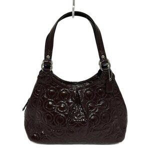 Auth COACH Gramercy Embossed Pouch 42966 Dark Brown Patent Leather - Handbag
