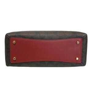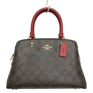 Auth COACH Mini Lillie Carryall 91494 Dark Brown Black Red PVC Leather - Handbag