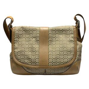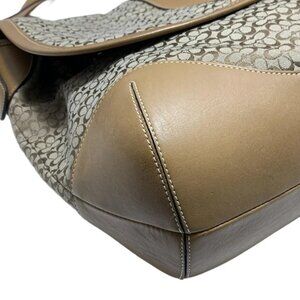 Auth COACH Mini Signature 5706 Khaki Brown Jacquard Leather - Shoulder Bag