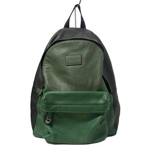 Auth COACH Patchwork Pebble Leather Campus Backpack 72239 Black Dark Green Khaki