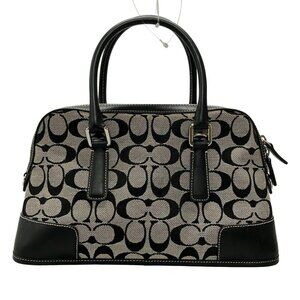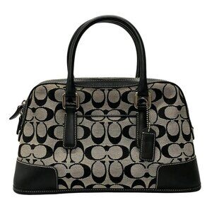 Auth COACH Signature 6047 Gray Black Jacquard Leather Handbag