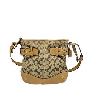 Auth COACH Signature Soft Duffle F03574 Khaki Light Brown Jacquard Leather