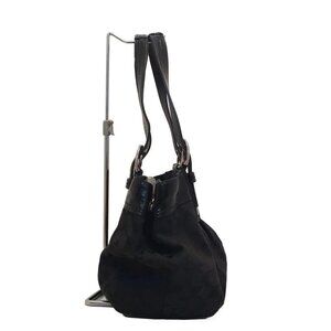 Auth COACH Soho Pleated Signature Tote F13742 Black Jacquard Patent Leather -
