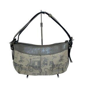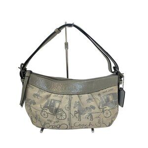 Auth COACH horse and carriage F15207 Cream Gray Jacquard Leather - Shoulder Bag