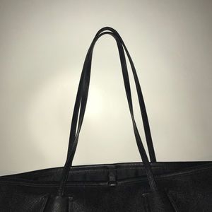 🔥☀️ scorching SUMMER SALE Authentic COACH black leather tote with gold clasp and detail. Two slim straps, One inside zipper pouch, and two accessory pockets as well as a clasp closure. One small blemish on the strap but in great use. Non smoker in great condition. Very gently used and loved with pride. I never set my purses on the floor. The bottom is approx 11" long the top approx 20" long and 11" tall.
