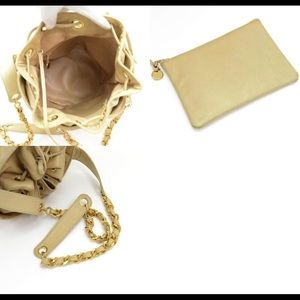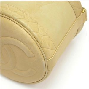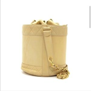 Auth Chanel Bucket Vintage Cream Lambskin Leather