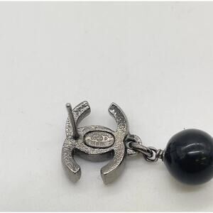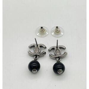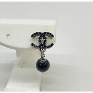 Auth Chanel Coco Mark Black Stone Swing Ball 09P 4.84g Earrings with box