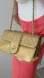 This stunning handbag is crafted of patent leather in gold with a diamond quilted flap that opens to a clean interior with minor lipstick stains. The bag features leather threaded matte gold chain handles (minor wears) with chain embellished eyelets and a facing flap with matte gold Chanel CC turn lock.