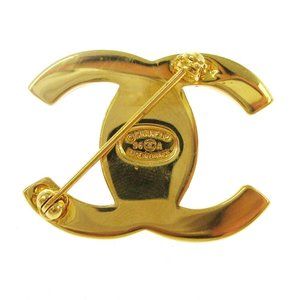 Auth Chanel Turnlock Brooch Pin Gold Small