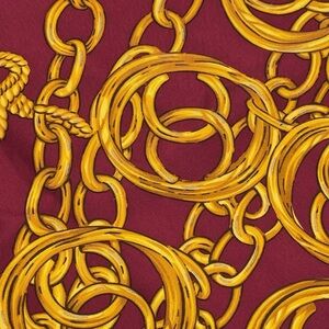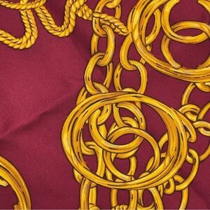 Auth Chanel gold chain and medallion design, Silk Scarf