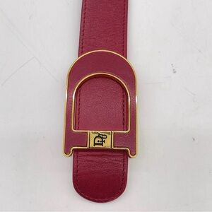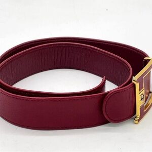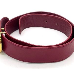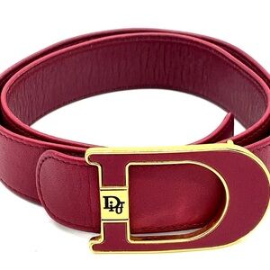 Auth Christian Dior Golden D Logo Buckle Burgundy Red Leather Belt