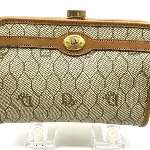 Auth Christian Dior Honeycomb Beige PVC Flap Mini Purse Coin Case NS061544
