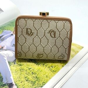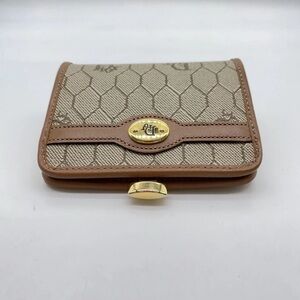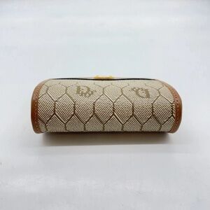 Auth Christian Dior Honeycomb PVC x Leather Beige Clasp Coin Case W/Box