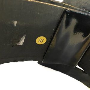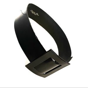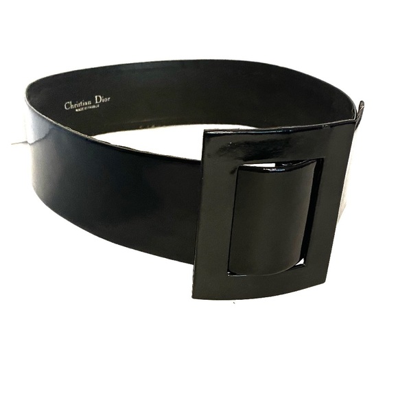 Classic and timeless. Black patent leather. Large square buckle closure. Belt is in excellent condition and only worn once.