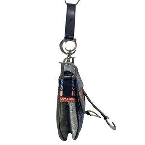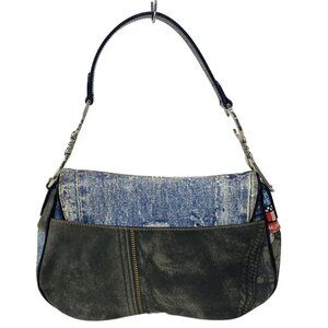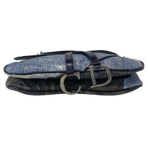 Auth DIOR/ChristianDior Double Saddle Bag Blue Red Multi Canvas Leather Handbag
