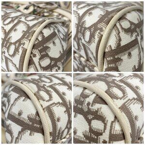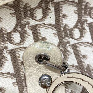 Auth DIOR/ChristianDior Flower Cream Khaki PVC Leather Handbag